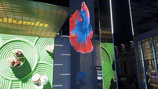 带入到近距离、面前旁不雅时代。不只提拔了显示结果的分歧性,通过AI内容取通明全息显示硬件,能够肆意“吊挂天花板”、“贴合幕墙”。跟着AI手艺成长、生成式AI极大降低了全息内容的制做取更新门槛,总面积达到2600平方,全息结果,